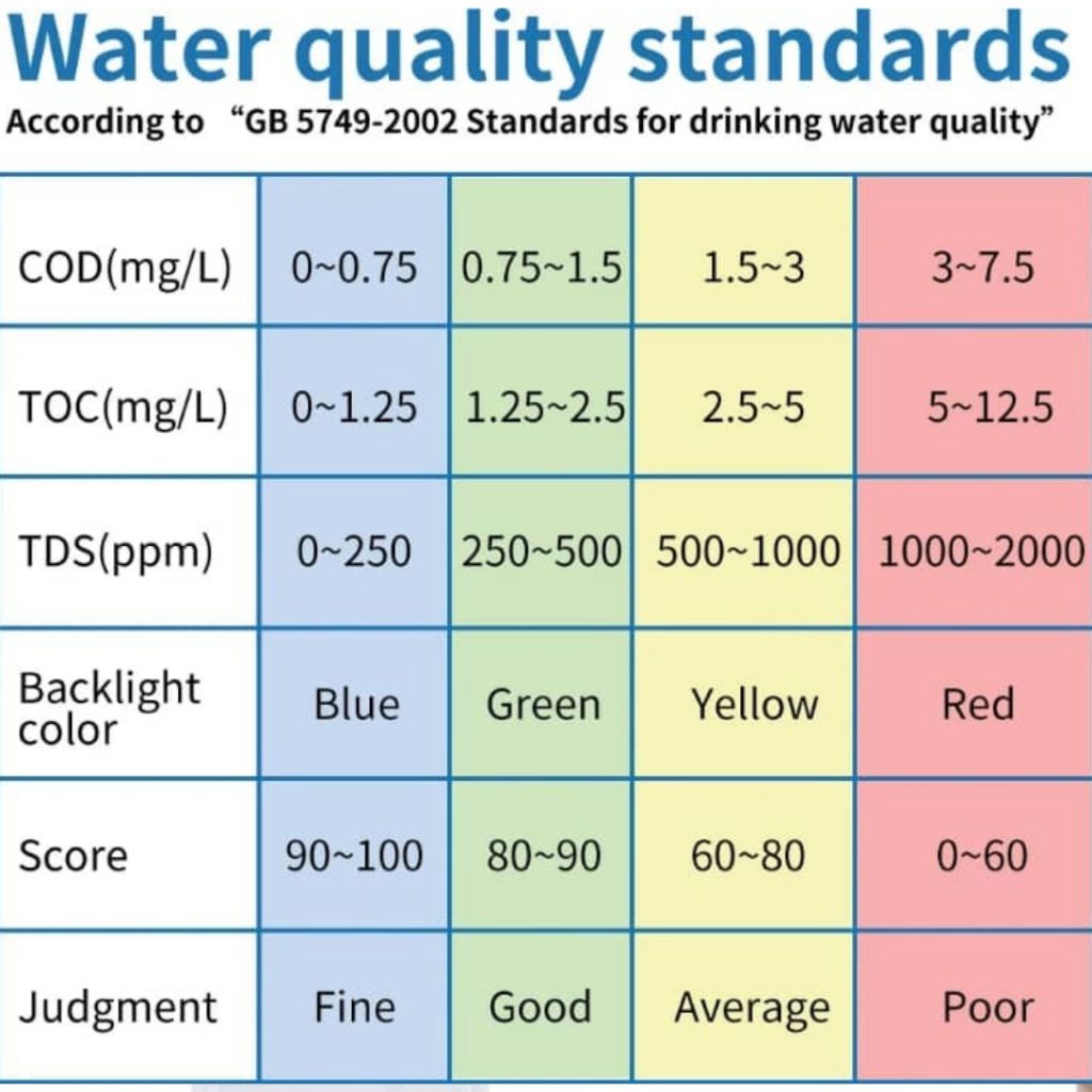 Intelligent Scoring:Features smart scoring that quickly evaluates water quality based on Chinese drinking water standards.